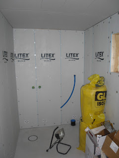 Og ute står litex-platene som skal utenpå panelet på badene.